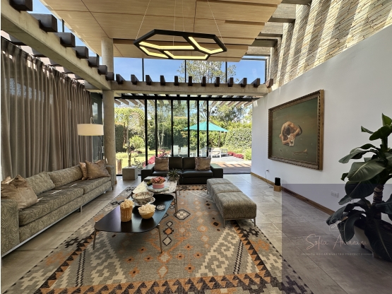 Casa campestre en una de las mejores unidades de Llano grande, construcción con acabados exquisitos, detalles en madera que hacen de esta propiedad un joya. Amplio salón comedor con doble altura, generosa iluminación, que destaca cada espacio, sala de televisión que se independizan con una puerta corrediza, baño social, cocina abierta, zona bbq, terrazas, habitaciones principal con baño, vestier y balcón en su primer nivel, espacio independiente de Jacuzzi y turco con su baño. En su segundo nivel nos recibe estudio con sala de tv, tres habitaciones todas con baño, balconaje y vestier.Zona de labores, habitacion,baño de servicio , parqueadero cubierto para 2 vehículos y descubiertos para 5 mas.