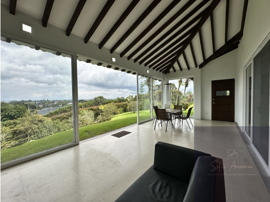 Si te gusta la naturaleza, la vistas majestuosas, los jardines y los espacios cómodos y acogedores, esta espectacular casa es para ti. Con una construcción de 480mt2 en primer nivel, con amplios espacios llenos de luz, una altura piso techo de 4 metros, 3 habitaciones, todas con baño y vestidor, adicional habitación y baño de servicio, baño social, amplio salón comedor con chimenea, que se integra a terraza donde podrás apreciar las visuales mas hermosas, cocina en madera, garaje, deck, y un sótano totalmente independiente para tus visitas, cuenta con casa auxiliar y lo mejor es que el lote de de 9.343mt2 con dos matriculas, lote principal con 5.346 con casa de 480mt2 y lote adicional de 4.000 mt2 con casa de 100mt2